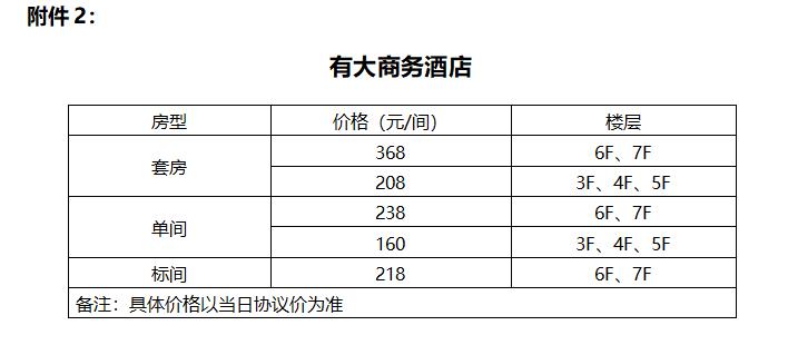 ①有大商务酒店(德恩公司旁)联系电话:夏强13678210199,参考价格详见附件2 。