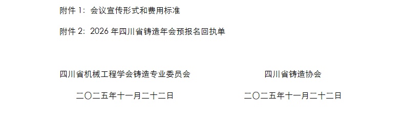 【最新】关于召开“2026四川省铸造年会暨四川省铸造协会员大会、 成立20周年庆典”预通知