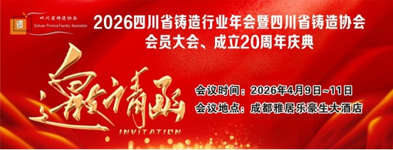 根据四川省铸造协会2026年工作安排,兹定于2026年1月10日在德阳应和机械制造有限责任公司召开四川省铸造协会第五届理事会第四次会议暨2026年会长联席会,审议2026年财务预算、工作计划等(具体议程附后),同时组织参观德阳应和机械制造有限责任公司,请您百忙之中抽时间参加,具体通知如下: