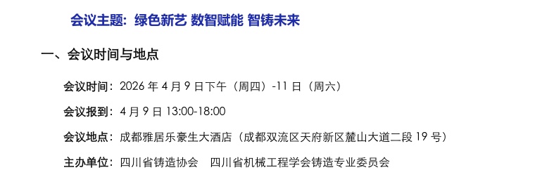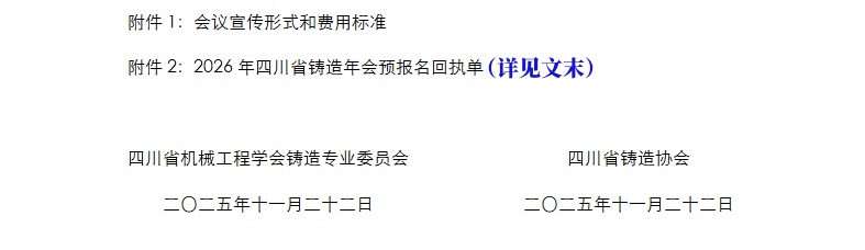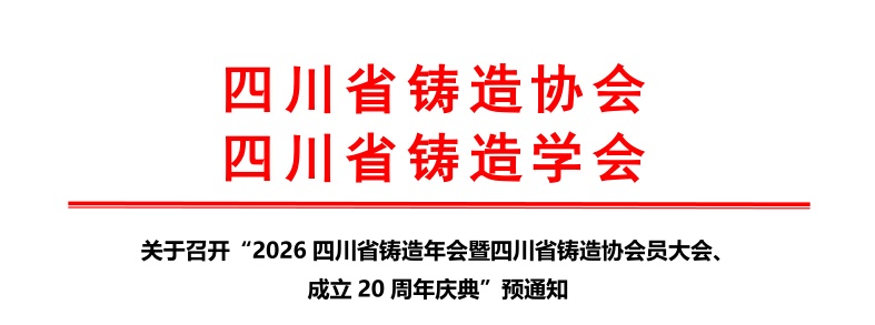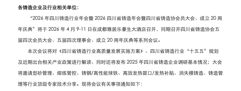 【最新】关于召开“2026四川省铸造年会暨四川省铸造协会员大会、 成立20周年庆典”预通知