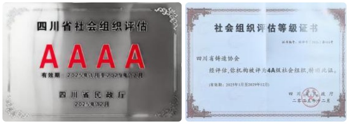 按照《四川省社会组织评估管理办法》有关规定,经自查、专家评估、审查公示、确定结果等程序,四川省铸造协会顺利通过2025年社会组织等级评估验收,继2016年后再次被四川省民政厅评估为 4A 级省级协会。